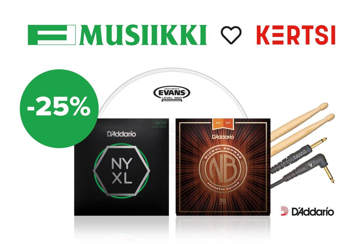 Saat esimerkiksi 25% alennuksen D'Addarion tuotteista: - kielet - kaapelit - Evans-rumpukalvot ja Promark-kapulat - Planet Waves -tarvikkeet
