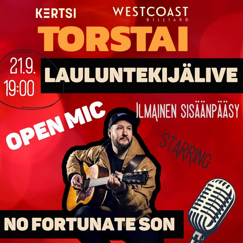 Ilta alkaa klo 19 Open Mic osuudella, jonne kaikki ovat tervetulleita esittämään omaa musiikkiaan. Klo 20 esiintyy kutsuvieras No Fortunate Son.